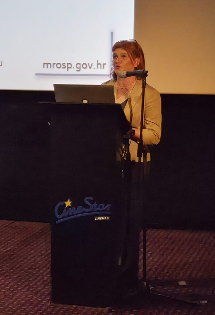 Gđa Marina Prelec iz Ministarstva rada, mirovinskoga sustava, obitelji i socijalne politike predstavila je Europsko istraživanje poduzeća o novim rizicima i onima u nastajanju – ESENER 2024. koje se bavilo temama poput upravljanja zaštitom na radu, psihosocijalnim rizicima, pokretačima i preprekama u zaštiti na radu.